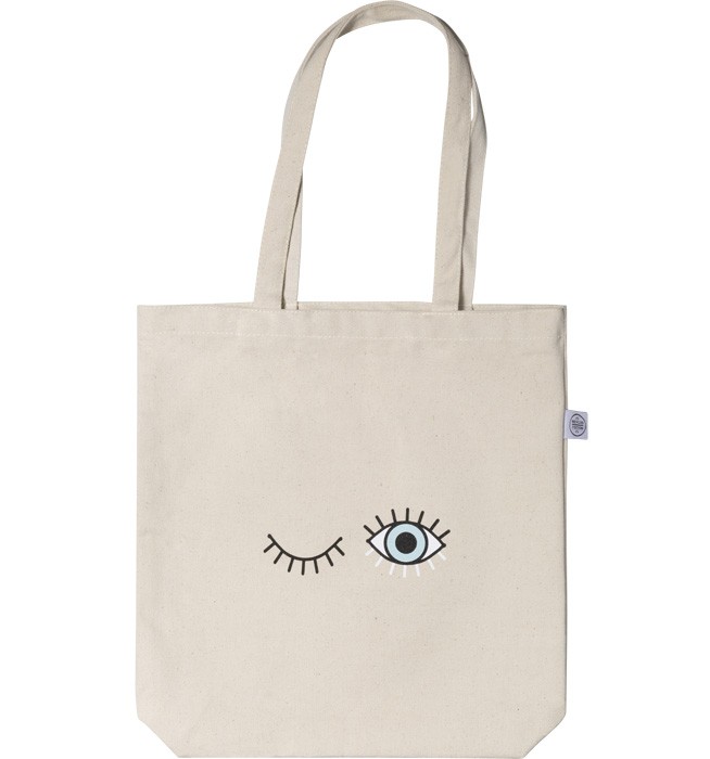 Handpicked Tote Bag in natürlichem Beige mit einem geschlossenen und einem offenen Auge. Die trendigen Motive machen unsere Tote Bags einzigartig, und du wirst stolz darauf sein, sie zu tragen! Die Stofftaschen aus unserer limited Edition wurden in Schweden bedruckt und bestehen zu 100% aus recycelter Baumwolle.
