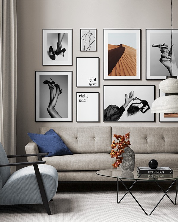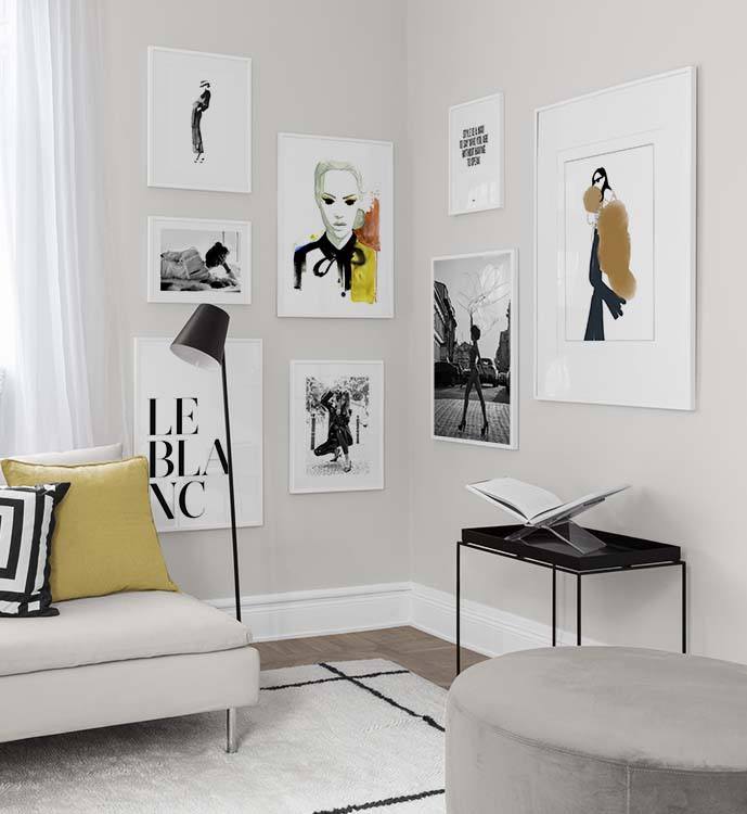 Moderne Einrichtungsbeispiele mit Fashion-Collagen. Du kannst die Poster auf den Bildern kaufen, indem du die Bilder anklickst.