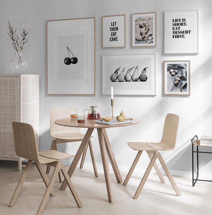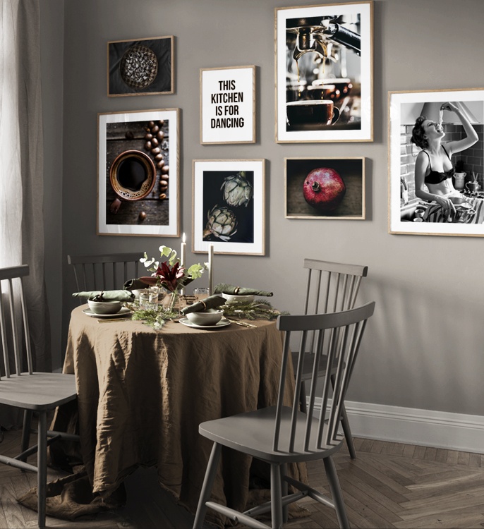 Mit Kunst kannst du kostengünstig und wirkungsvoll frischen Wind in deine Küche bringen. Hier komponieren wir unsere verschiedenen Poster und Motive zu einer tollen Kombination, die perfekt in die Küche oder ins Esszimmer passt. In der Küche verwenden wir gerne Poster und Designs rund um Küche und Kochen: Fotos von frischen Kräutern, ein Rezept für einen leckeren Cocktail oder ein tolles Zitat.