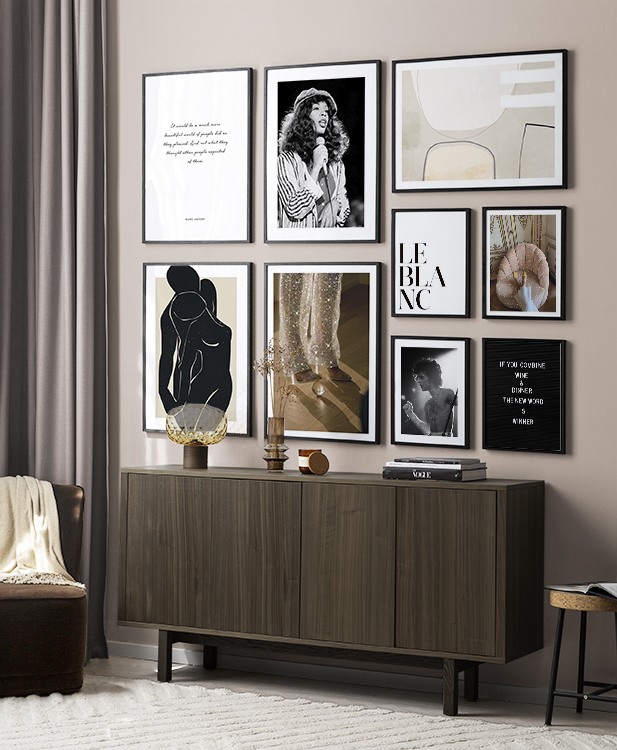 Hole dir Inspiration und Tipps, wie du die großen Wände im Wohnzimmer mit Postern und Wanddekorationen gestalten kannst. Das Wohnzimmer ist häufig das größte Zimmer. Große Wandflächen sind perfekt, um eine wirkungsvolle Bilderwand zu kreieren. Ideal sind Poster in unterschiedlichen Größen und Formaten. So entsteht eine Bilderwand, die lebendig wirkt und deine Persönlichkeit widerspiegelt.
