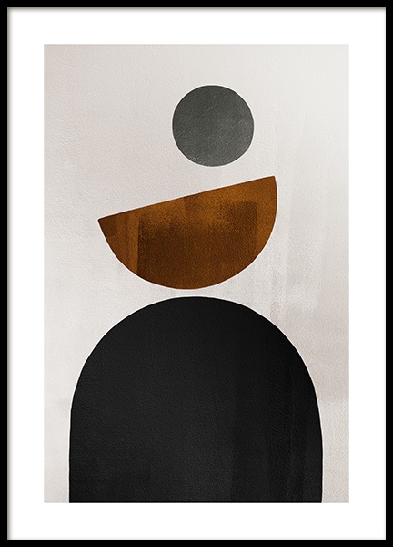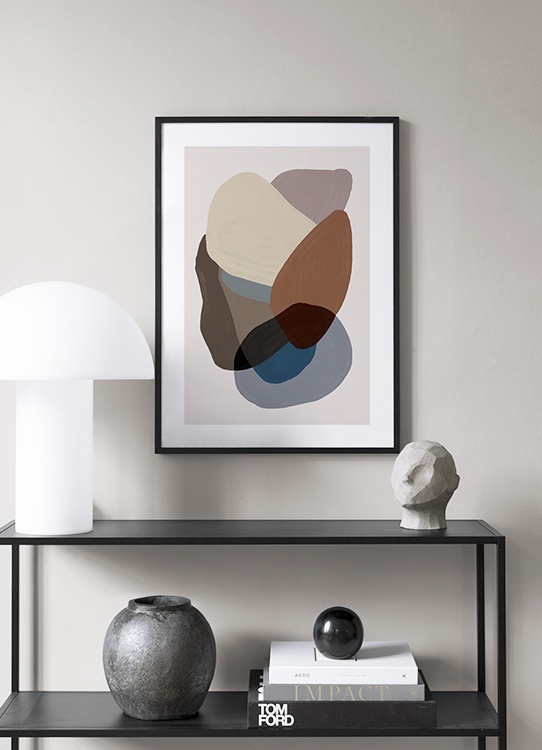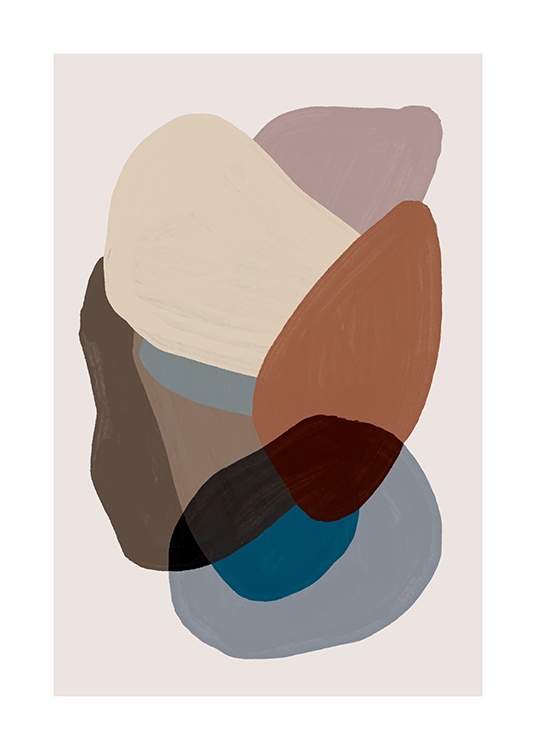 Handpicked Malerei mit einem Cluster aus Formen in verschiedenen Braun – und Blauschattierungen auf beigem Hintergrund. Wenn du Poster in erdigen und ruhigen Farben auswählst, gestaltest du eine wunderbare Wohlfühl-Oase! Dieses Poster passt perfekt zu Browns and Blues No2.