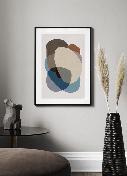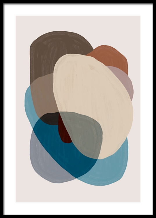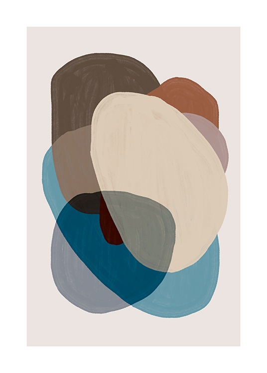 Handpicked Malerei mit überlappenden blauen, beigen und braunen Formen auf beigem Hintergrund. Mit seinen Erdtönen bringt dieses Poster nicht nur eine moderne Note, sondern auch einen ruhigen Look in dein Zuhause. Kombiniere es mit Browns and Blues No1 zu einem perfekten Duo!