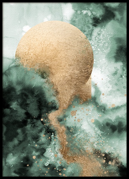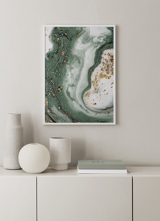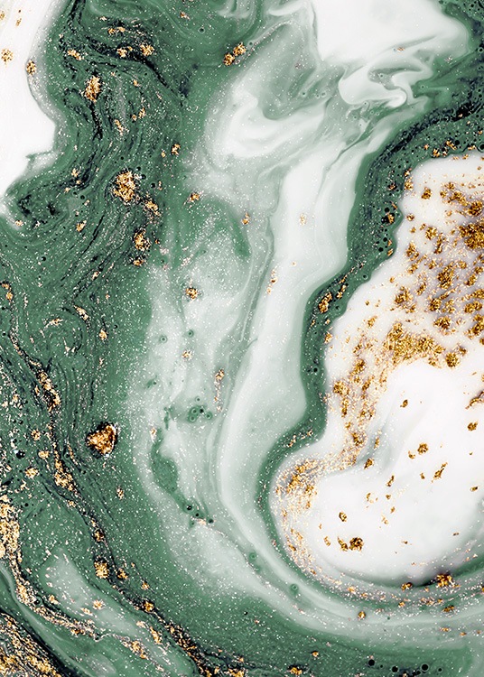 Ab 9,10 €Abstrakter Kunstdruck mit einem Wirbelmuster in Grün, Weiß und Gold. Lass deiner Kreativität freien Lauf und komme für eine Weile aus deiner Komfortzone! Abstrakte Kunst wird nie aus der Mode kommen, und dieser Druck ist keine Ausnahme.