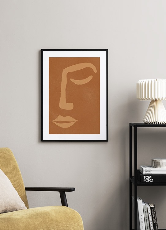 Ab 5,98 €Abstrakte Darstellung eines Gesichts in dicken, beigen Linien auf einem braunen Hintergrund mit kleinen Flecken. Warme, erdige Töne sind perfekt, um einen entspannten Look im Wohnzimmer zu gestalten!