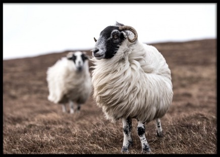 Fotografie einer Highland-Kuh, die auf einem Feld steht, im Hintergrund Berge. Dieses beliebte Poster, das eine süße Kuh zeigt, sollte in jedem Zuhause einen Platz bekommen! Zusammen mit Naturpostern in erdigen Farbtönen kannst du in Handumdrehen dein Traumzuhause gestalten.