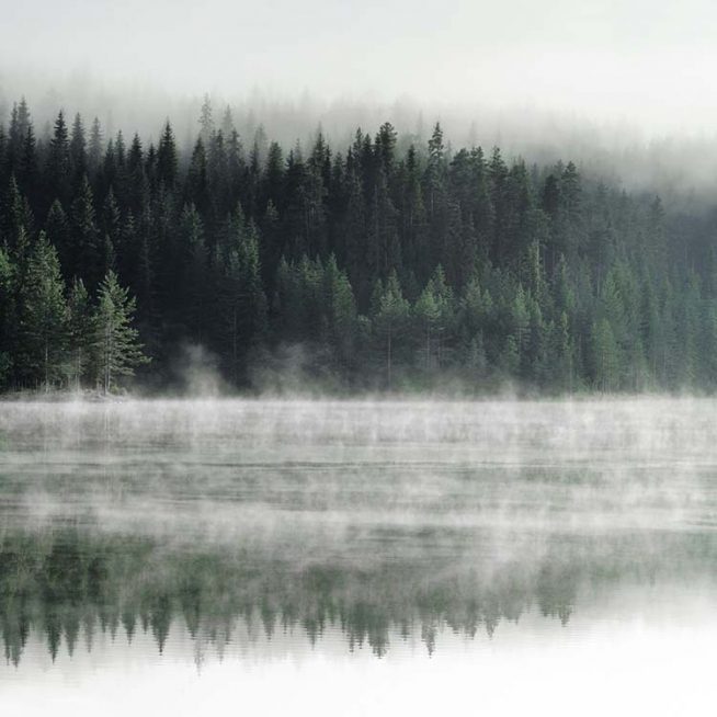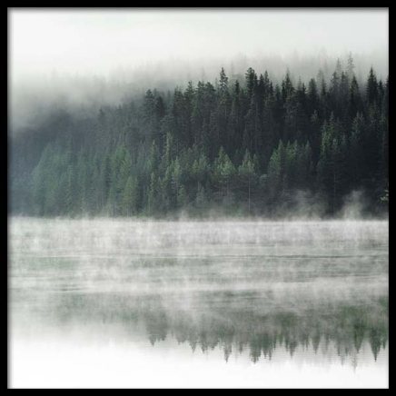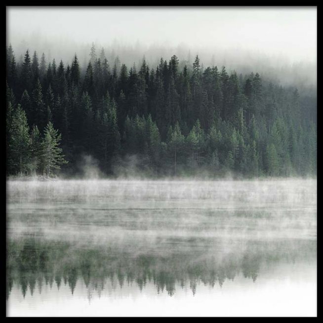 Handpicked Naturfotografie, die einen See und Wald mit Nebel zeigt, der über dem Wasser schwebt. Mit seinem quadratischen Format fügt sich das Motiv perfekt in eine Bilderwand mit klassischen Rechteckformen ein. So entstehen eine tolle Dynamik und reizvolle Kontraste. Entdecke weitere quadratische Poster in der Größenkategorie 50x50 cm.