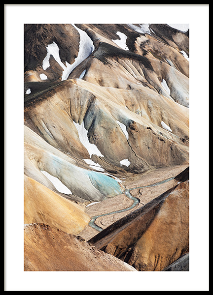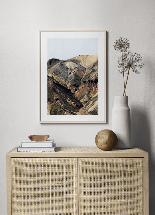 Handpicked Fotografie von bunten Bergen in Landmannalaugar, dem südlichen Hochland auf Island. Entdecke Studio Elements, eine Fotokollektion vom Desenio Design Studio, die an legendären Orten auf Island aufgenommen wurde.