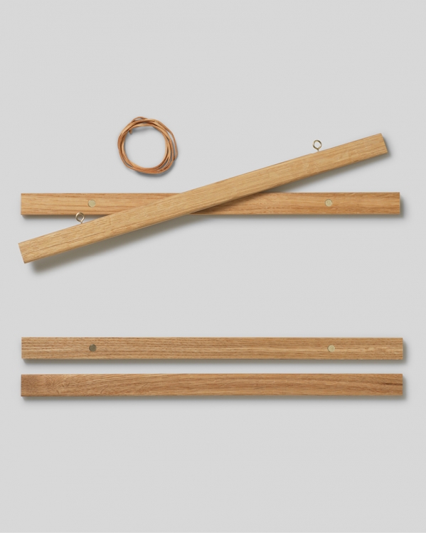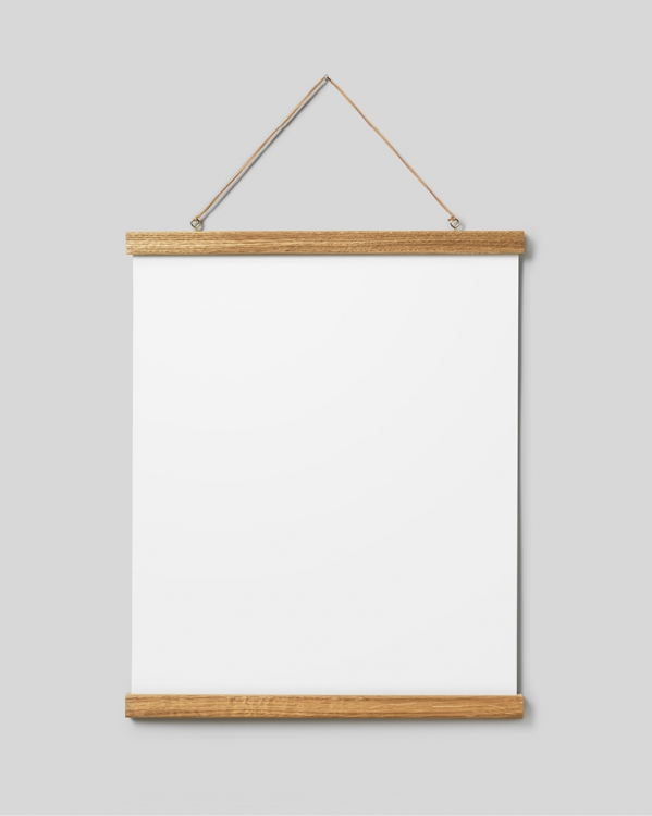 Posterleiste aus massivem Eichenholz, 41 cm. Diese Posterleiste ist mit einer intelligenten Magnetlösung ausgestattet, die das Poster hält, ohne es zu beschädigen. Geeignet für Poster im Hochformat in der Größe 40x50 cm oder im Querformat in der Größe 30x40 cm. Die Posterleiste ist mit einem Band aus Wildlederimitat in einer passenden hellbraunen Farbe ausgestattet.