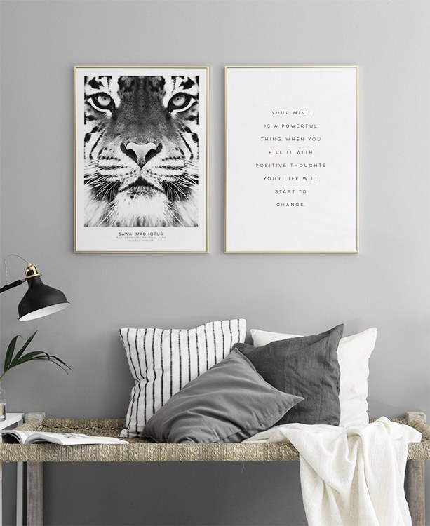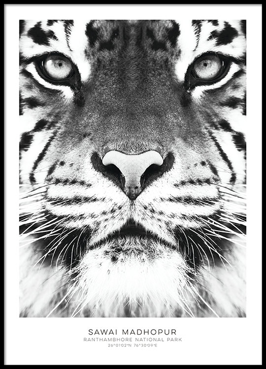 Schwarz-Weiß-Plakate mit Fotokunst und Tiger. Schöne Poster online