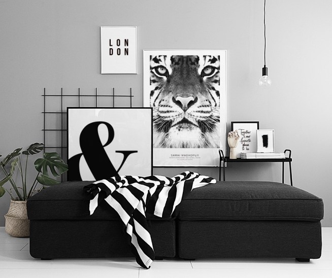 Posters, affischer och planscher med svartvita fotografier på djur.