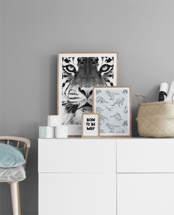 Handpicked Poster mit schwarz-weißem Tiger, das ausgezeichnet in einen Bilderrahmen oder in eine Bilderwand passt. Wenn du weitere Fotografien mit wilden Tieren suchen, findest du diese in unserer Kategorie mit Insekten und Tieren oder der Fotografie-Kategorie. In unserem Sortiment führen wir viele Poster mit Tier- oder Naturmotiven, in Farbe oder in Schwarz-Weiß. Das Poster hat einen '„integrierten'“ Passepartout, der dem Motiv einen schönen Rahmen gibt.
