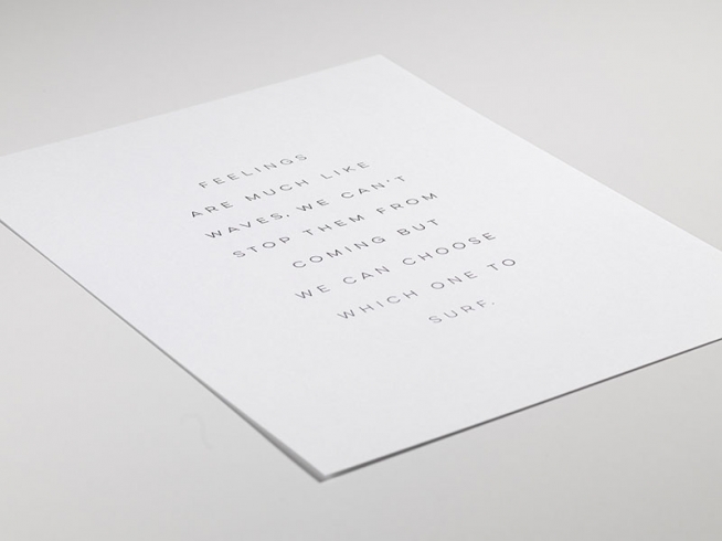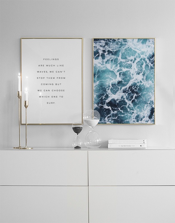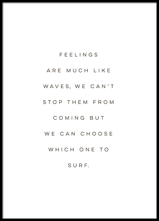 Handpicked Schönes Typografie-Poster mit Zitat und Botschaft. Feelings are much like waves, we can't stop them from coming but we can choose which one to surf.