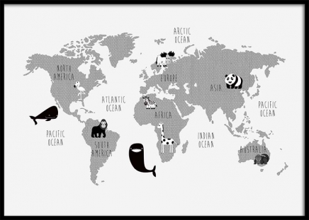 Eine Weltkarte für Kinder verleiht dem Kinderzimmer Wärme und schafft die Atmosphäre eines eigenen kleinen Zuhauses. Die Kinder ihre Wandkunst wählen zu lassen, macht der ganzen Familie Spaß. Deine Kinder werden stolz sein, ihre "eigenen" Poster an die Wand zu hängen!