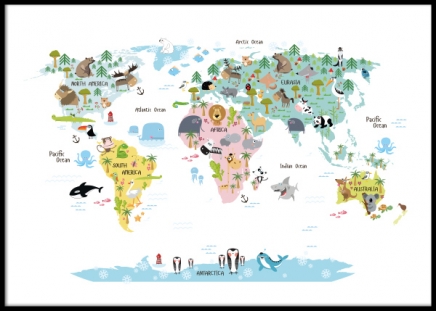 Dein Kind etwas über die Welt zu lehren, kann mit einer Weltkarte Kinder eine unterhaltsame Sache sein. Unsere Kollektion besteht aus niedlichen, lustigen Motiven, die für Kinder etwas bedeuten. Zeige den Kindern auf der Weltkarte Kinder mit ihren niedliche Illustrationen Tiere und Orte und übe sie mit ihnen! Unsere Poster sind lustig und heiter und ziehen die Aufmerksamkeit jedes Kindes auf sich.