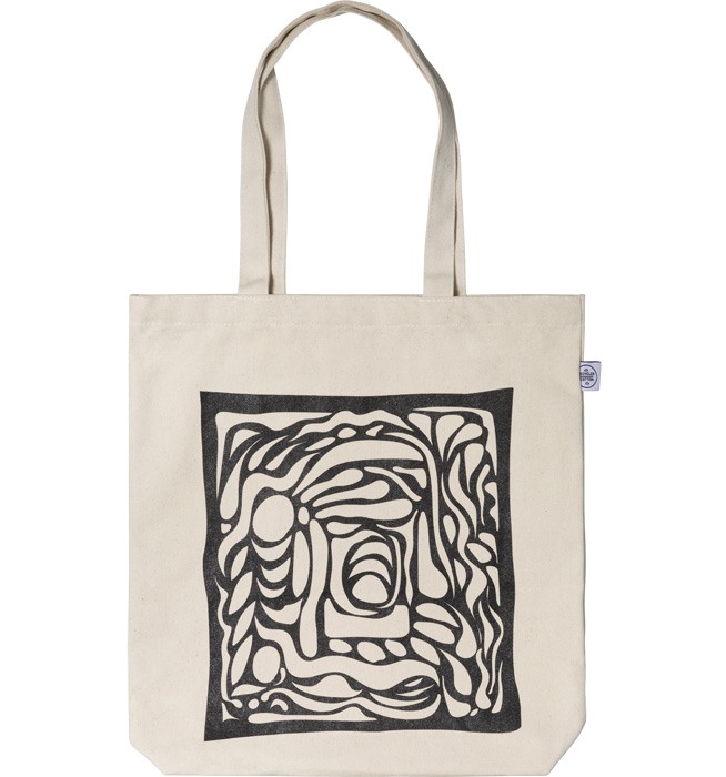 Handpicked Tote Bag in natürlichem Beige mit einem abstrakten Motiv in Schwarz. Die aufgedruckten Motive machen unsere Tote Bags zu einem fantastischen Accessoire für jeden Tag! Die Stofftaschen aus unserer limited Edition wurden in Schweden bedruckt und bestehen zu 100% aus recycelter Baumwolle.