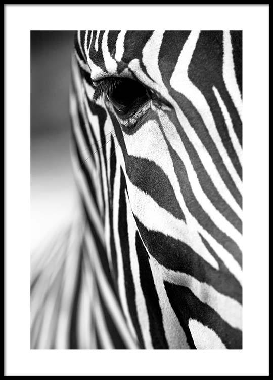 Zebra Close Up Poster in der Gruppe Poster / Schwarz-Weiß bei Desenio AB (3855)