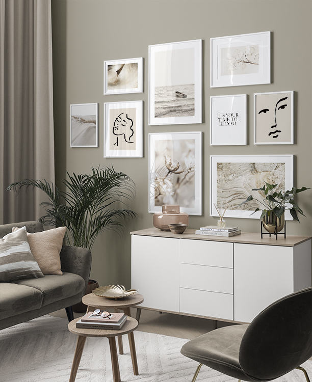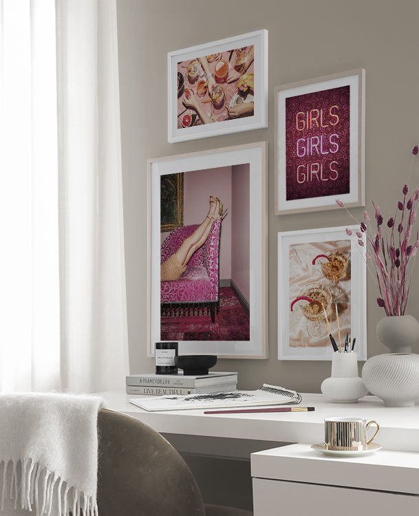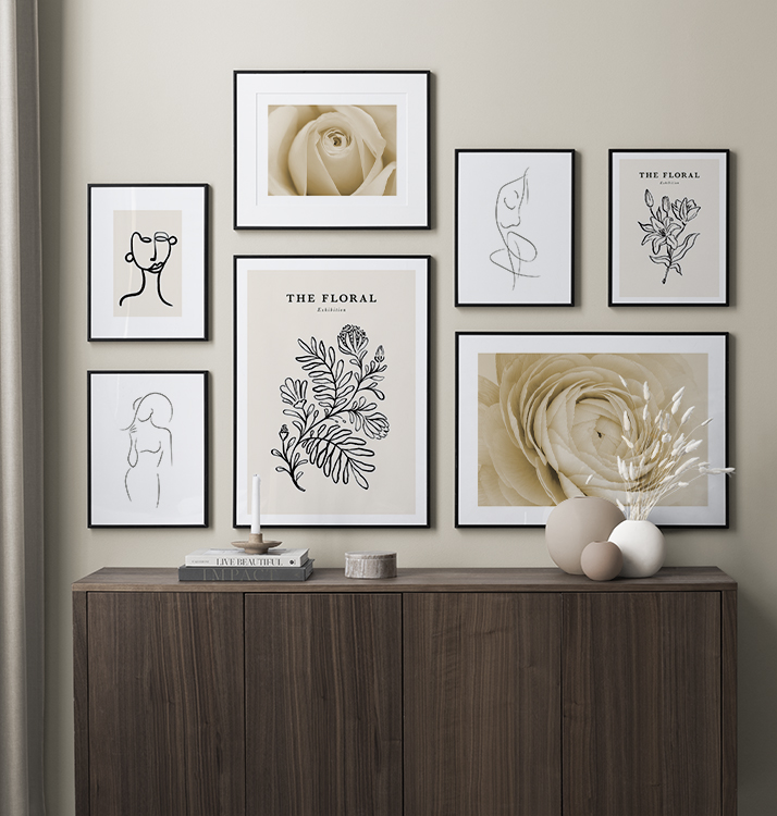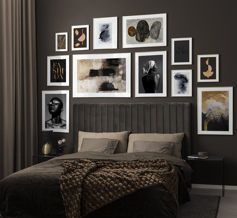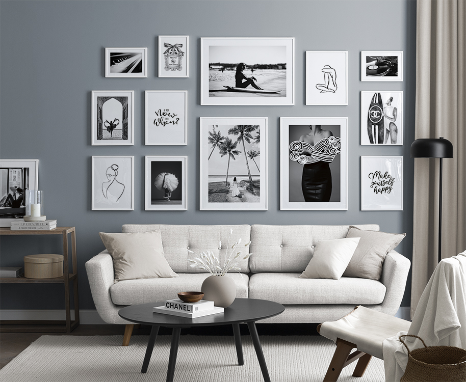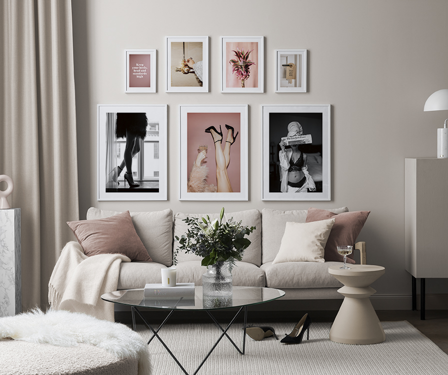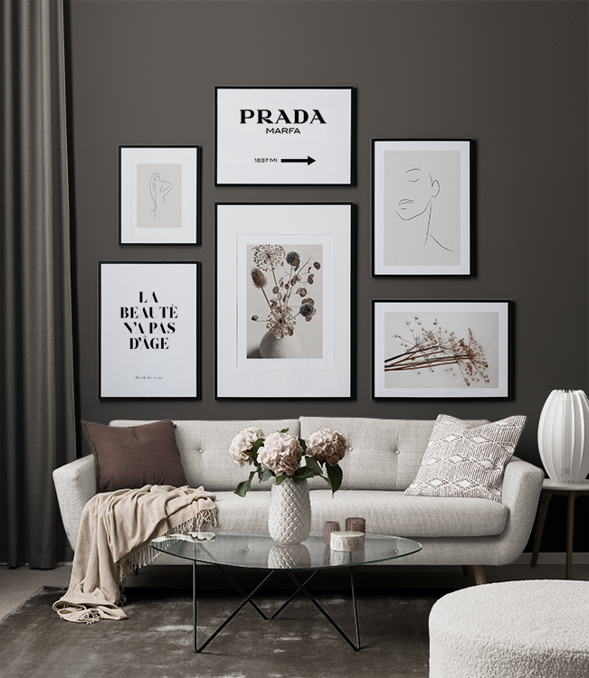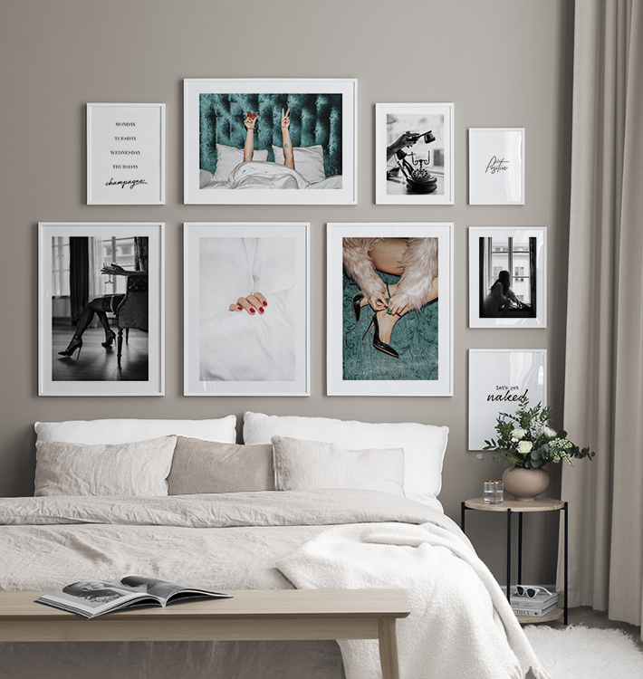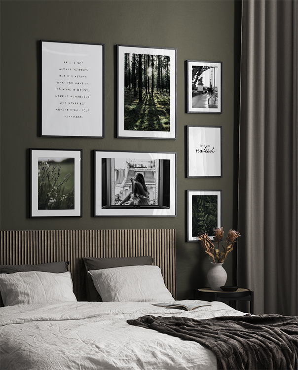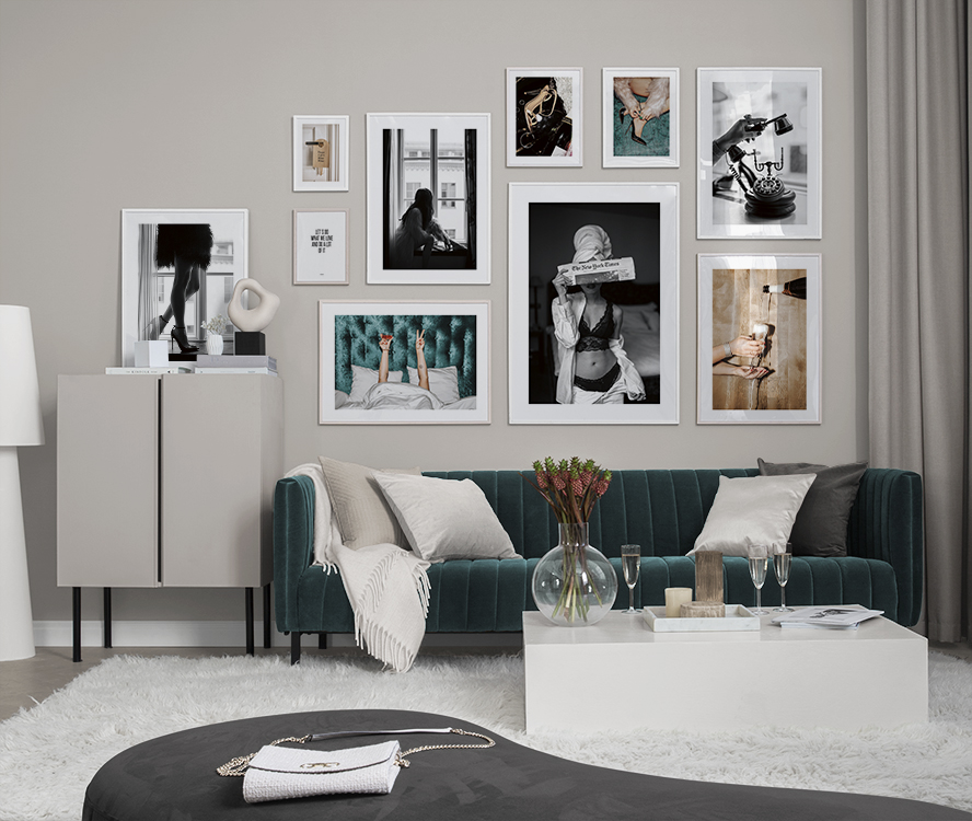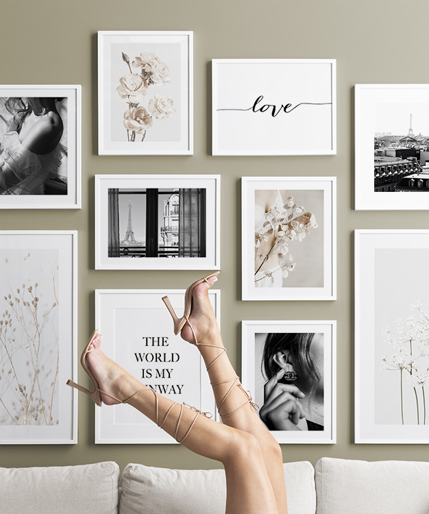 Bei jeder Bilderwand kannst du ausserdem die Motive anpassen und Grösse, Rahmen, Passepartout und weiteres Posterzubehör auswählen, um eine individuelle Kombination zu kreieren. Die Möglichkeiten sind grenzenlos – nur die eigene Fantasie setzt die Grenzen. Lass dich inspirieren und hol dir mit wenigen Klicks deine ganz persönliche Bilderwand!