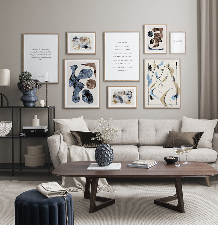 Wir aktualisieren regelmässig unsere Bilderwände nach Jahreszeit und den neuesten Einrichtungstrends. Durch den Kauf neuer Motive und die Zusammenstellung neuer Kombinationen kannst du deine Einrichtung einfach und kostengünstig variieren. Wir kreieren massgeschneiderte Bilderwände für die unterschiedlichsten Räume und Einrichtungsstile. Zum Beispiel kannst du eine Bildcollage für die Küche mit schönen fotografischen Motiven in einem moderneren Stil kaufen, oder aber eine stilvolle Bilderwand für das Wohnzimmer mit minimalistischen Illustrationen, die hervorragend zu einer skandinavischen Einrichtung passen.