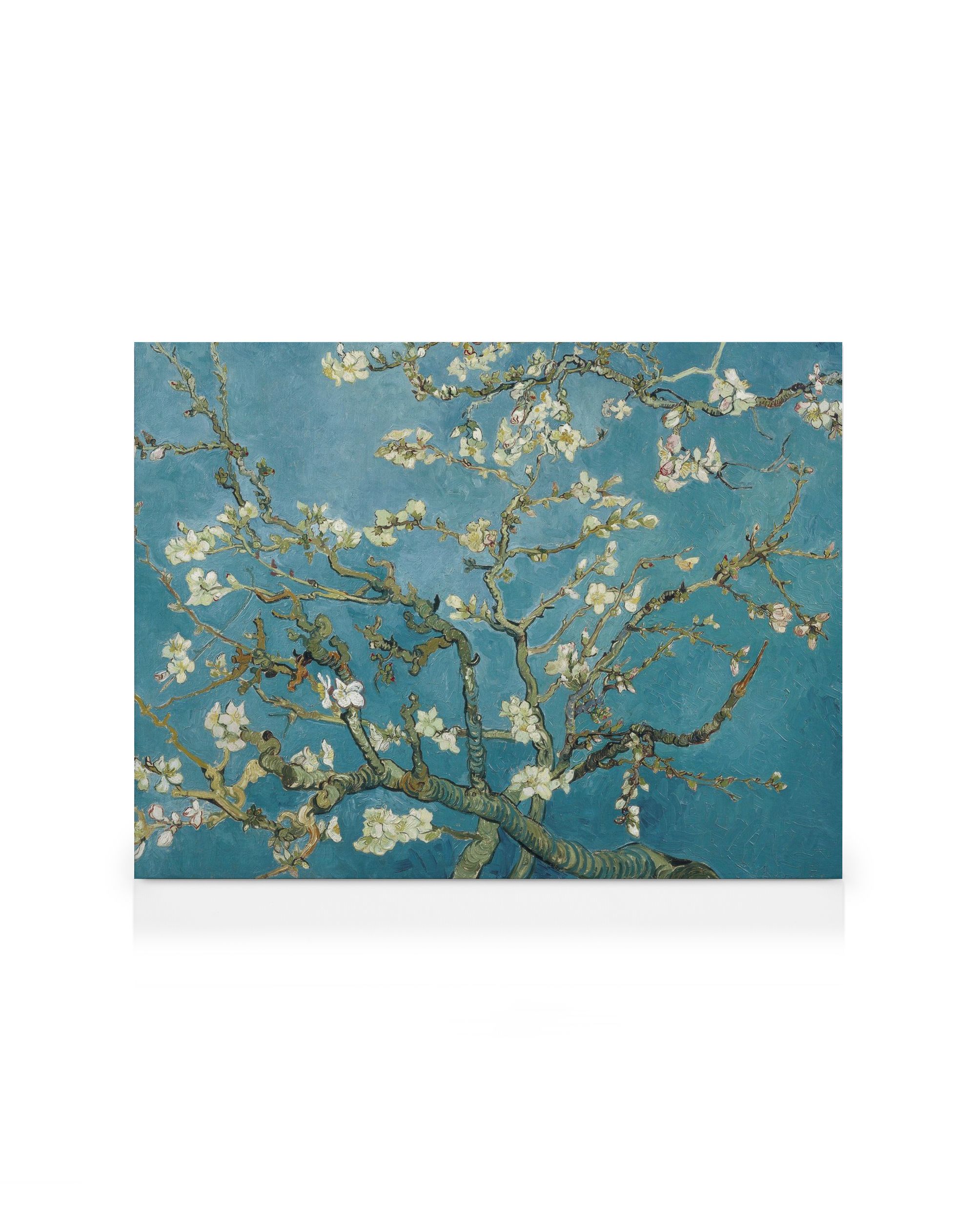 Wunderschöne Kunst von Van Gogh. leinwände zeigt einen schönen Baum mit weißen Blüten. Der Hintergrund ist in einem magischen Blaugrün gehalten.