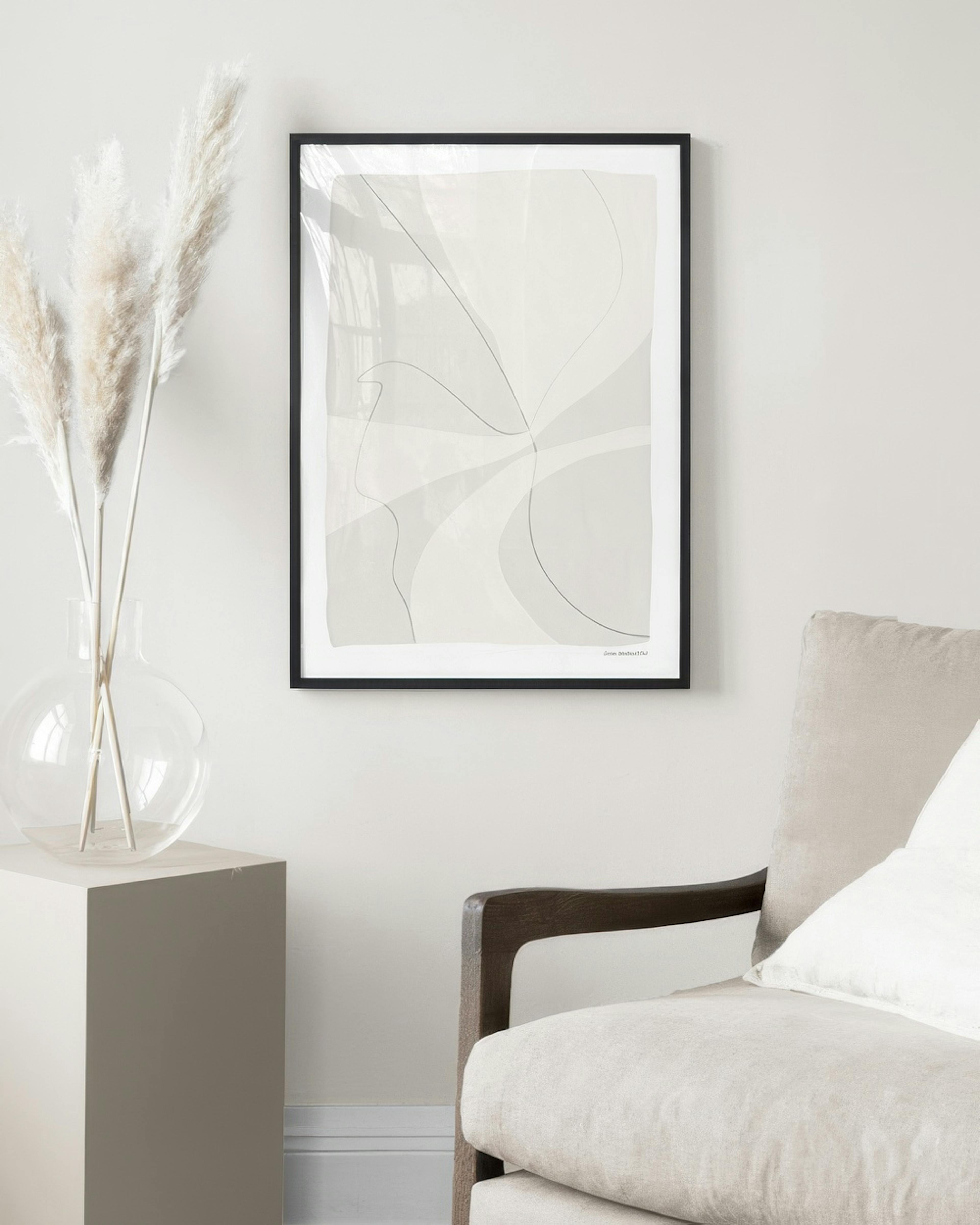 Illustration mit abstrakten Formen und Linien in Beige- und Grautönen. Dieses stilvolle Poster ist die perfekte Wahl für ein Wohnzimmer, in dem du einen stilvollen Look kreieren möchtest. Kombiniere das Poster mit dem „Calm Abstract No2“ für ein perfektes Paar!