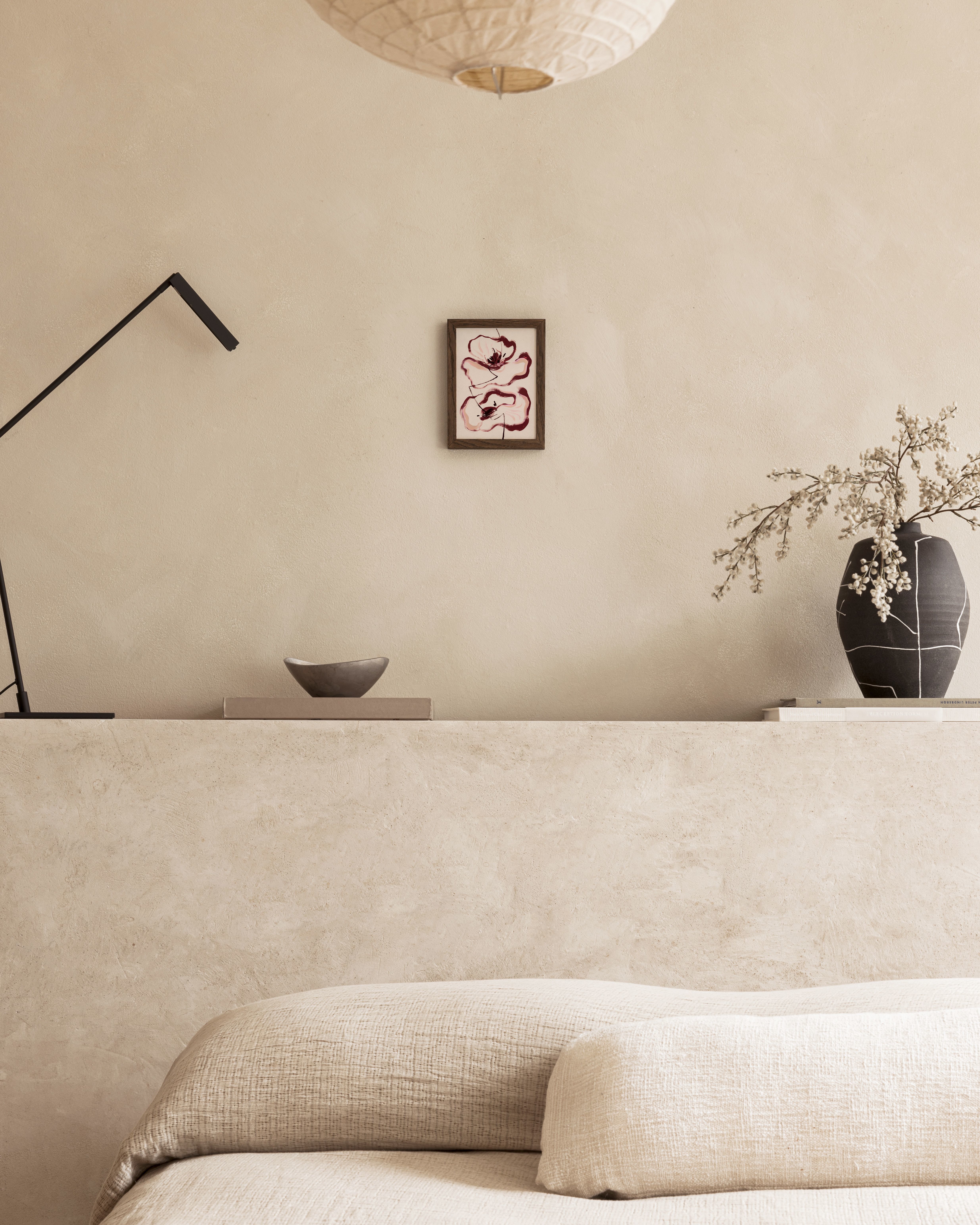 Ab 4,77 €Ein Poster mit zwei abstrakten Blumen mit großen Blütenblättern in dunkelroten und rosa Farben auf einem hellbeigen Hintergrund.