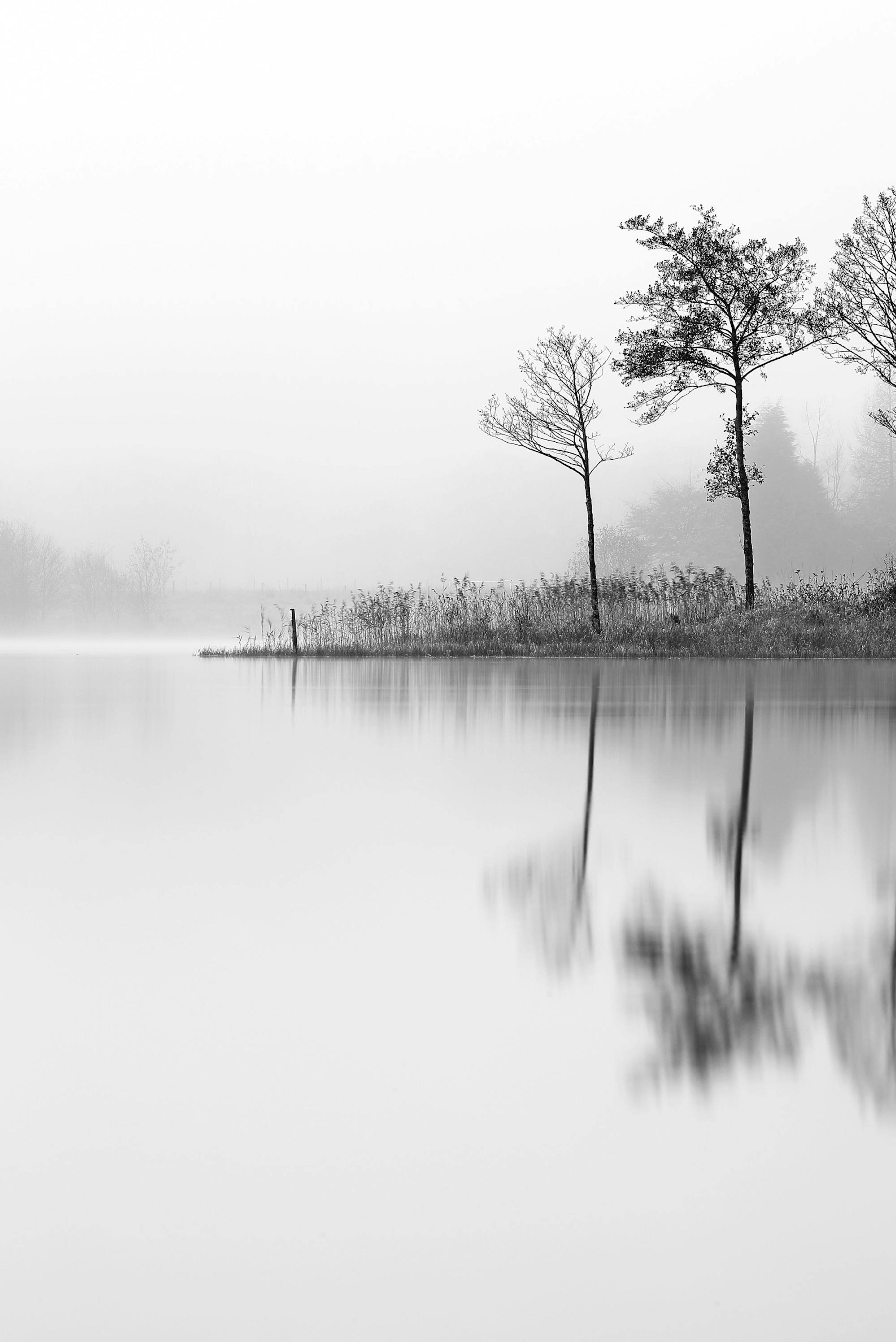 Schwarz-weißes Poster mit Fotokunst. Wunderschönes, Ruhe stiftendes Motiv eines Sees mit Wasserreflektionen. Das Poster kann allein, zusammen mit anderen Fotografien oder mit den 'mindfullness'-Postern mit inspirierenden Texten verwendet werden.